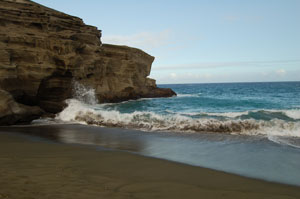 Puu Mahana, a green sand beach on the southeast coast of Hawaii